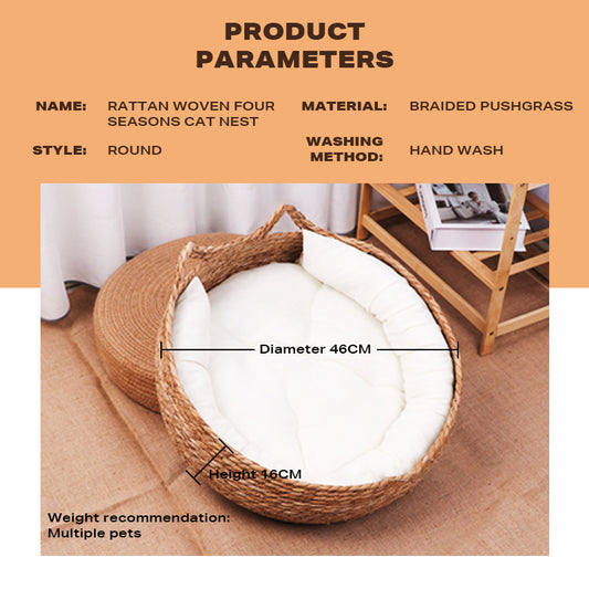 Hand Woven Pet Bed Basket Nest With Bedding