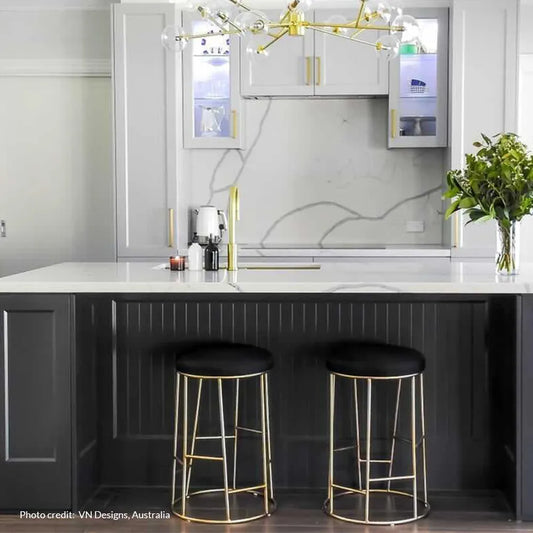Aiden Gold Steel Kitchen Stool - Black Linen