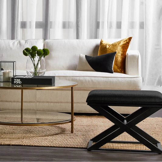 Spencer Black Timber Stool - Black Linen
