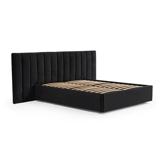 Vega Black Velvet King Bed Frame with Storage