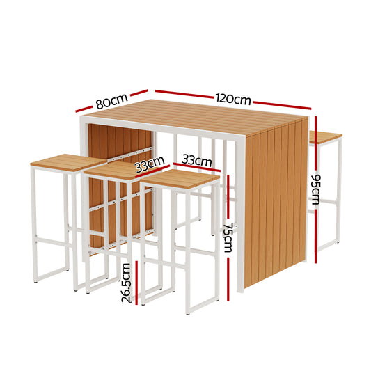 5 PC Outdoor Bar Table 4 Seater Stools Bistro Set - Acacia Wood