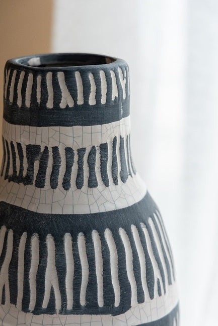 Blue & White Abstract Ginger Jar Tall - 26x26x50cms