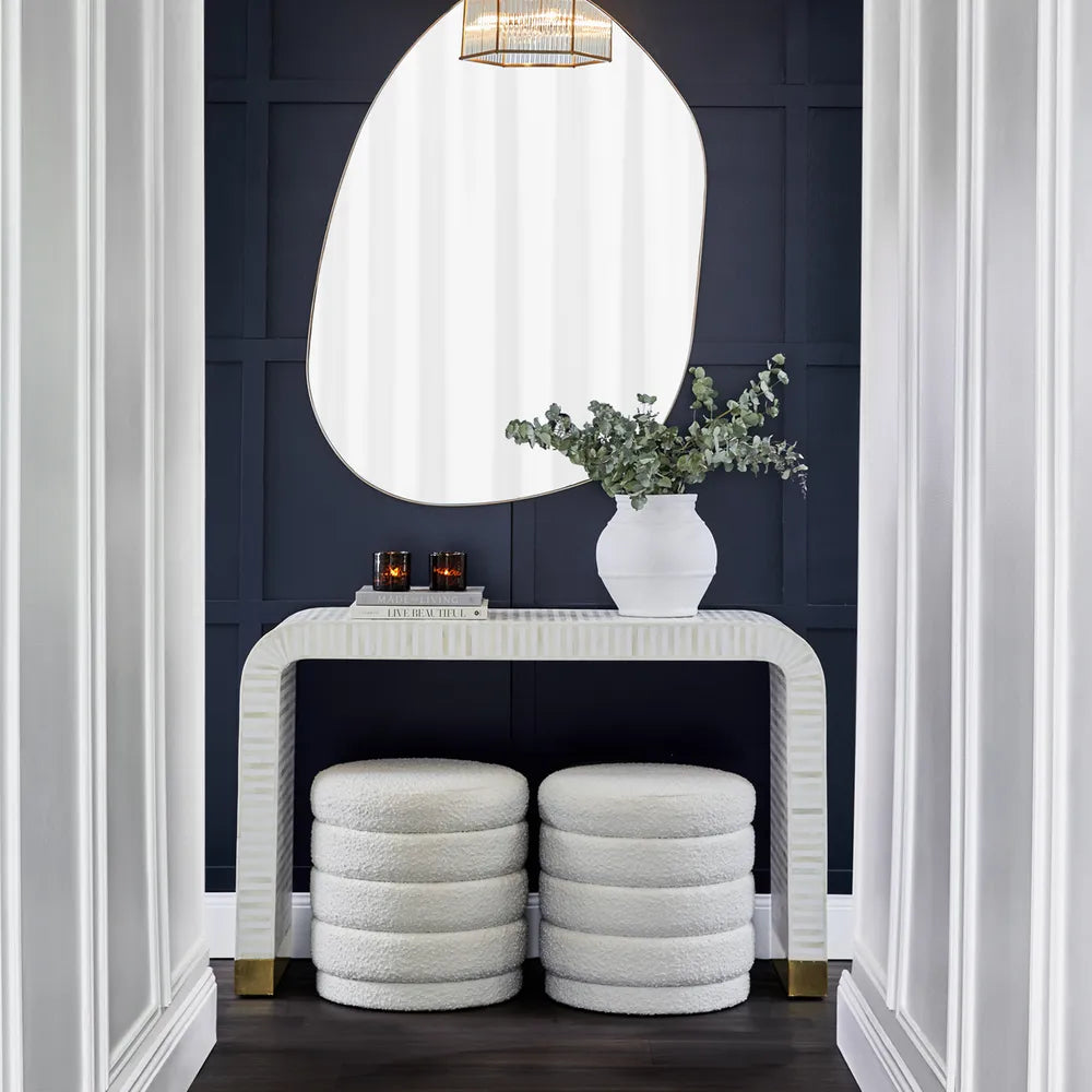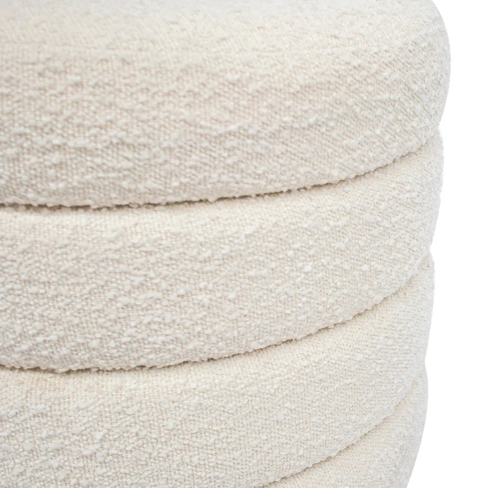 Upholstered in a gorgeously tactile white boucle fabric, the perfectly proportioned Demi stool lends a sense of sophistication to any space. Designed with an effortlessly chic cosmopolitan mood in mind, the panelling detail of the Demi stool enhances its textural quality and adds to its natural, organic feel. Ideal for adding personality to a bedroom, living room or as additional seating, the Demi stool works to bring modern character to a range of interior aesthetics. Also available in off white linen, nude, olive or black velvet.