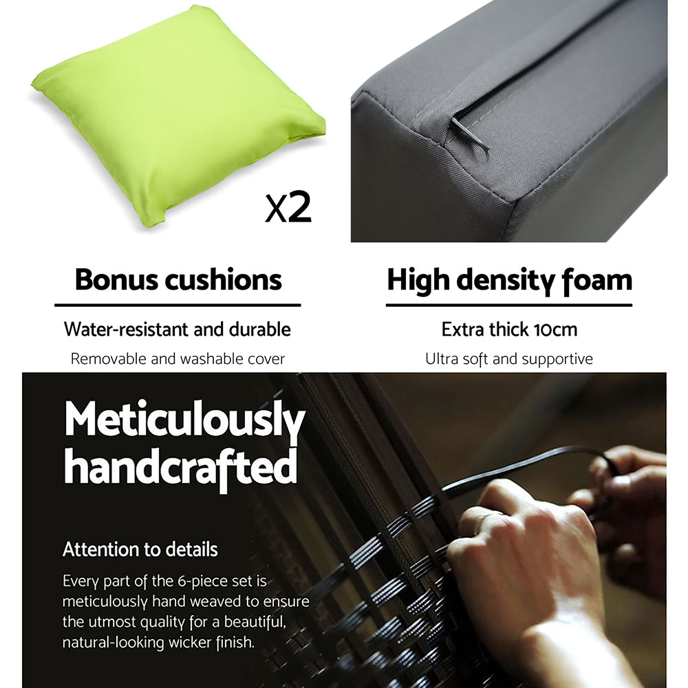 It's time to give your backyard a complete make-over with our stylish yet affordable outdoor furniture set. Made of heavy-duty aluminium frame and UV resistant PE wicker, together with amazing designs, you just won't be disappointed with the quality. The set comes with plush seat cushions padded in high-density foam and weather-resistant covers. You will also receive a matching square shape coffee table with a tempered glass top. Moreover, with these outdoor furniture set, you can easily arrange how you want your party to be set up. Freely set up an L-shaped sofa for a warm gathering or spread the chairs around the backyard for your guests, the choice is totally yours.