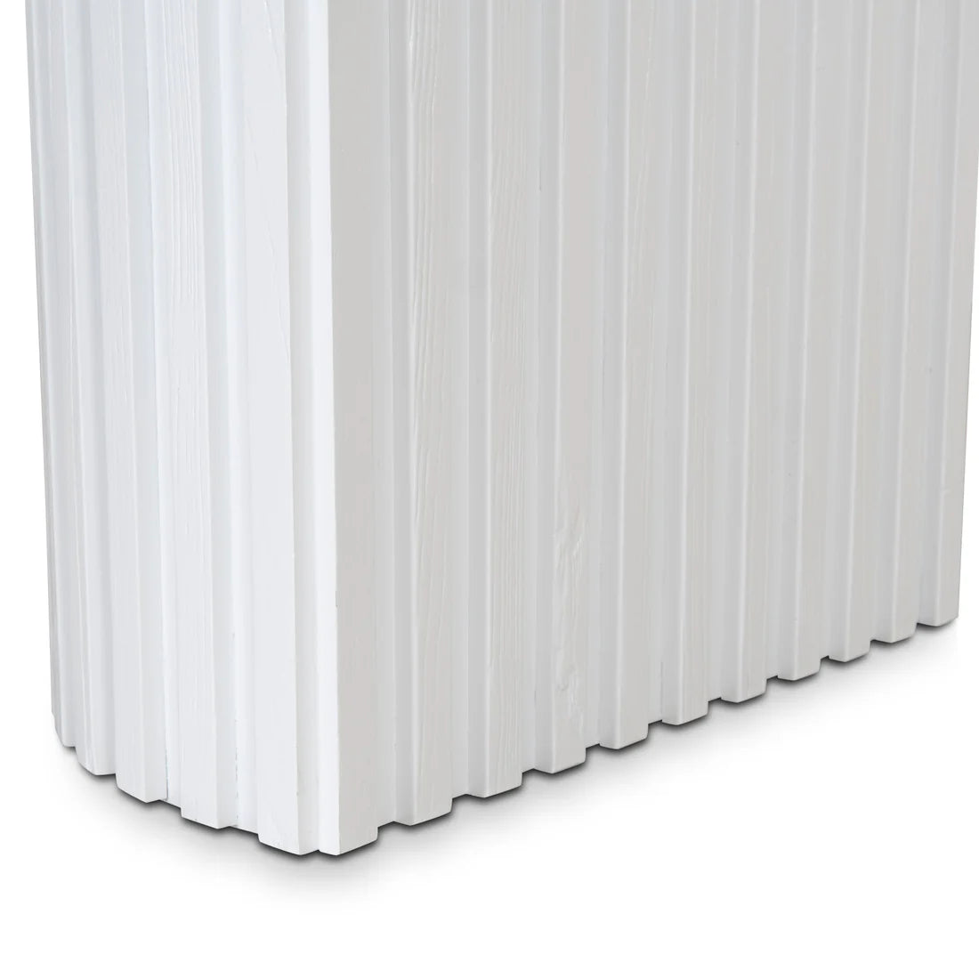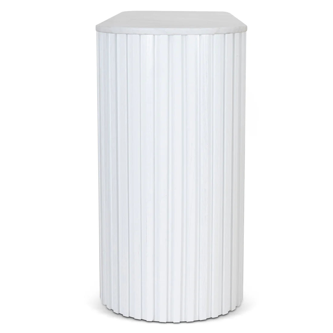 The Hercules White Marble Console Table combines refined craftsmanship with striking design to elevate any space. Its expertly crafted white marble top offers a smooth, luxurious surface that complements the solid elm wood legs finished with a natural plywood veneer. The bold cylindrical leg design, enhanced by a ribbed structure, creates an elegant sculptural presence while ensuring stability and durability. With a robust weight capacity of 150 kg, this console table is both functional and stylish. Delivered fully assembled, it seamlessly blends sophistication and versatility, making it an enduring statement piece for contemporary or classic interiors.