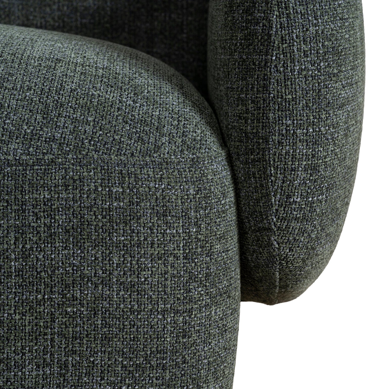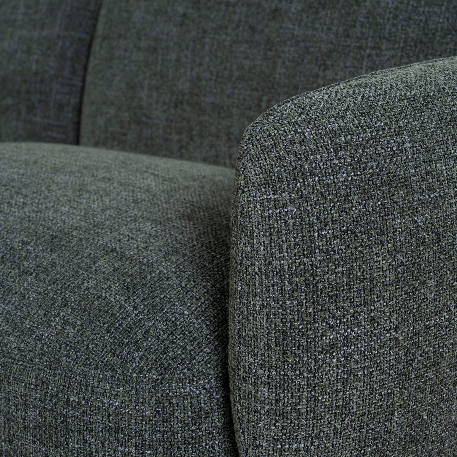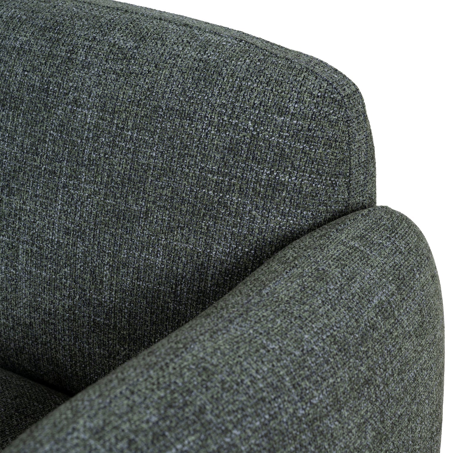 Introducing the Nimbus Left Chaise Modular Sofa in Moss Green. This modular sofa features a sturdy plywood and solid wood frame with rubber legs for reliable support. Enjoy a soft and comfortable seat with foam and fiber filling and web and spring suspension. Its subtle texture gives a modern touch to any living room.