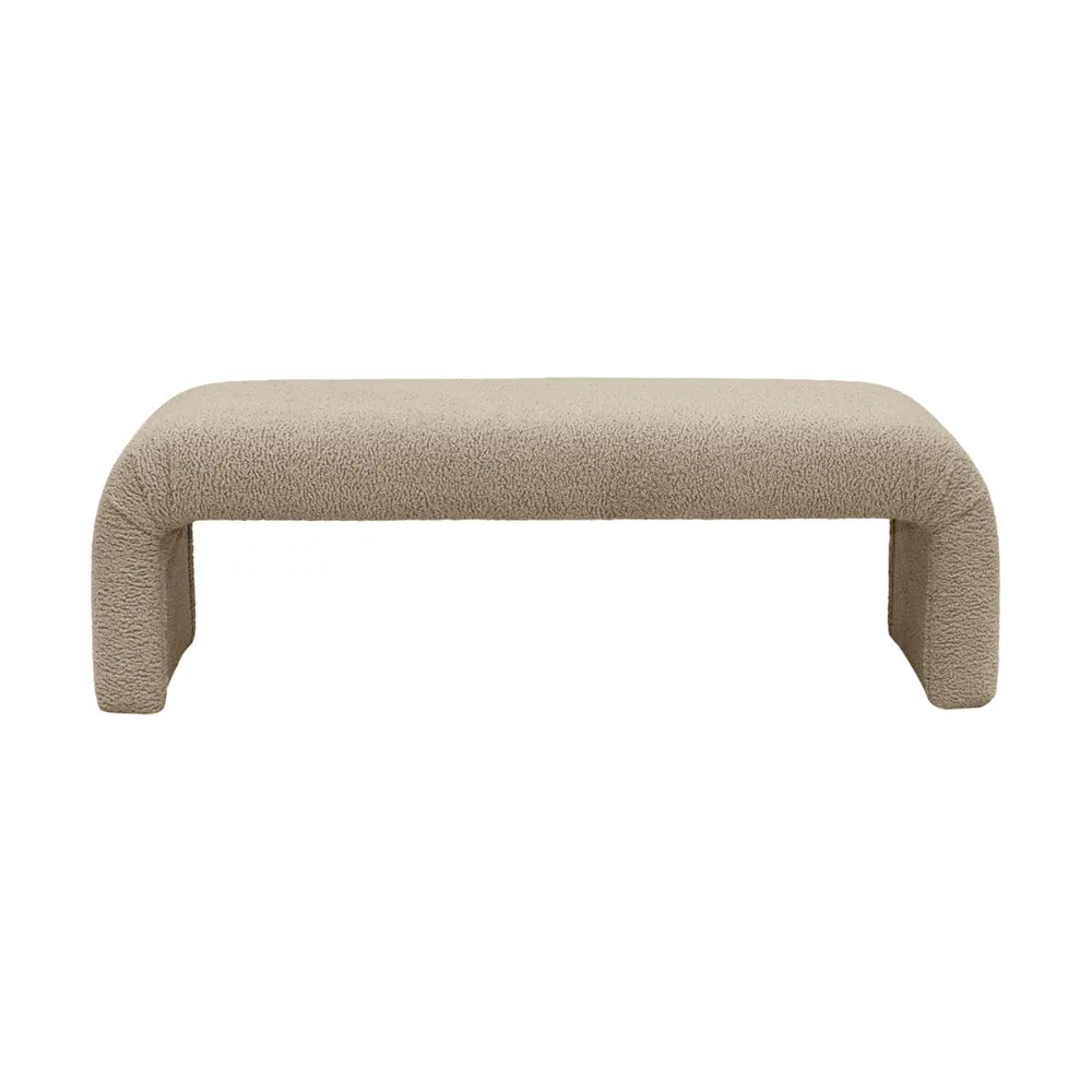 Inspired by the on-going trend for all things curved and undeniably modern, you’ll be captivated by the irresistible feel of The Curve Bench Ottoman upholstered in a cool latte faux shearling fabric. Constructed from a sturdy wooden frame with webbing, springs and ample foam