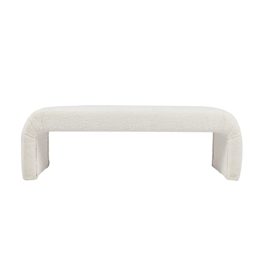 Inspired by the on-going trend for all things curved, The Curve bench ottoman is a striking furniture piece with sensuous curves upholstered in a gorgeous white boucle. Elevating modern interiors with its gorgeous texture and bold, sculptural form, The Curve bench ottoman is constructed from a sturdy wooden frame with webbing, springs and ample foam cushioning - ensuring comfort while delivering undeniable style.