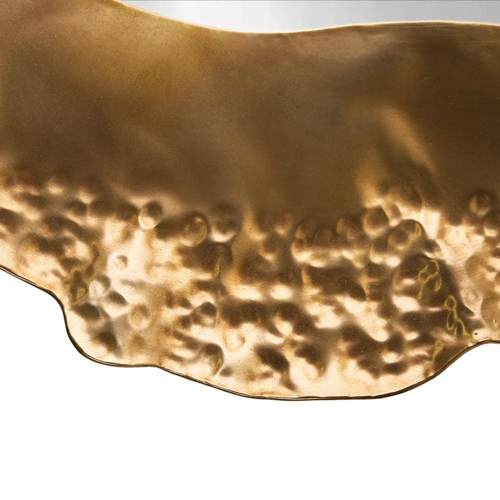 The York Wall Mirror brings a bold sculptural touch with its organically shaped, textured iron frame, finished in an eye-catching electroplated gold. This versatile piece doubles as both a functional mirror and a statement artwork, featuring a clear, flat glass surface and convenient built-in hooks for easy vertical or horizontal mounting. Encased and lightweight, it seamlessly fits modern, eclectic, or luxurious interiors, adding artistic flair and metallic elegance to living rooms, entryways, or bedrooms.